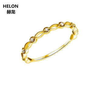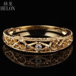 Solid 10K Yellow Gold Filigree Natural SI/H Diamond Round Full Cut Wedding Ring Vantage Art Deco Women Trendy Fine Jewelry