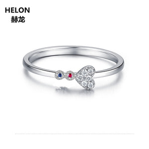 Solid 14k White Gold Natural Diamonds Ruby Sapphire Engagement Wedding Ring for Women Heart Party Fine Jewelry
