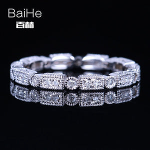 BAIHE Sterling Silver 925 0.2CT Certified H/SI3 Round Genuine Natural Diamonds Wedding Women Office/career Fine Jewelry Ring