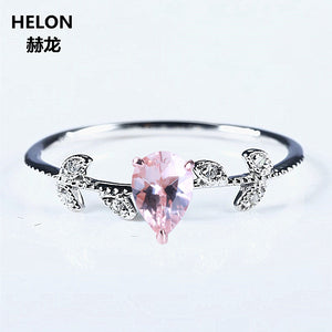 Solid 14k White Gold Rose Gold Natural Diamonds 5X7MM Pear Morganite Ring Wedding Engagement Fine Jewelry