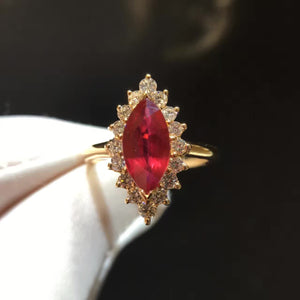 Women 18 k gold inlaid natural ruby ring Noble fashion exquisite Wedding gift for the real thing