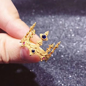 ANI 18K Yellow Gold (AU750) Women Wedding Ring Certified Blue Sapphire Ruby Crown Shape Ring Custom for Women Fine Jewelry