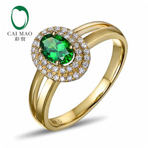 18KT/750 Yellow Gold 0.38 ct Natural Tsavorite & 0.17 ct Full Cut Diamond Engagement Gemstone Ring Jewelry