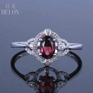 Solid 14K (585) White Gold Flawless Oval 4x6mm Garnet Pave Real Natural Diamonds Gemstone Wedding Trendy Fine Jewelry Ring