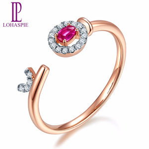 Lohaspie Diamond-Jewelry Natural Gemstone Ruby 18K Rose Gold Wedding Engagement Arrow Open Ring Fine Fashion Stone Jewelry New