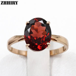 Natural Garnet Gems Ring Fire Stone For Women Genuine 18k Rose Gold Rings Fine Jewelry