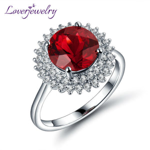 Vintage 18K White Gold Natural Ruby Ring Round 8mm Diamond Jewelry for Women Engagement Gift Classic Jewelry Rings