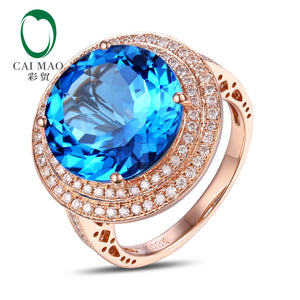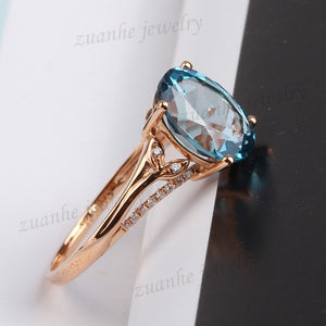 8x10mm Oval Cut Natural Blue Topaz Ring Diamonds Solid 14k Rose Gold Women Engagement Wedding Ring Fine Jewelry Gift Ring