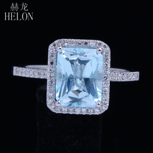 8.5x6.5mm Emerald Cut Natural Sky Blue Topaz Solid 10K Rose Gold Natural Diamonds Engagement Wedding Women Jewelry Ring