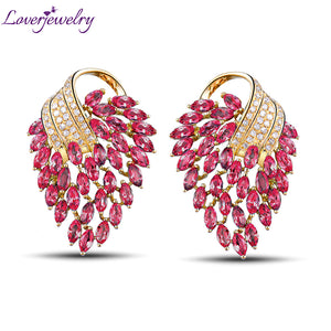 Vintage 18K Yellow Gold Natural Diamond Pink Red Ruby Earrings Fine Jewelry For Women Jewelry Gift E153A