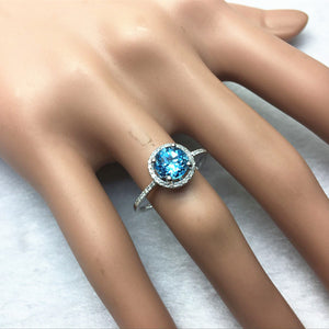 6.5mm Round Cut Solid 10k White Gold 1.44ct Blue Topaz & Natural Diamonds Engagement Wedding Gemstone Jewelry Ring