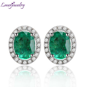 Oval 6x8mm Solid 14Kt White Gold Diamond Emerald Earrings Studs Emerald Fashion Earrings Jewelry In 585 White Gold E0053