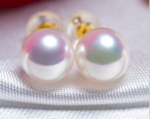 free shupping Perfect AAA natural 8-9mm Akoya white pearl pearl earrings gold