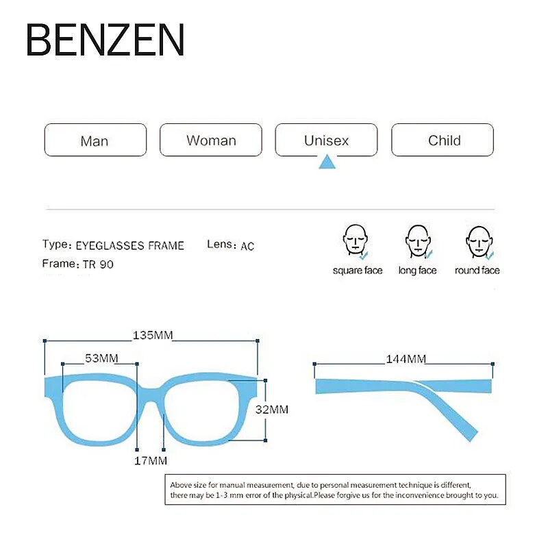 BENZEN Quality Optical Glasses Frame Men Women Ultralight Myopia Eyeglasses Frame Square Prescription Eyewear  5196