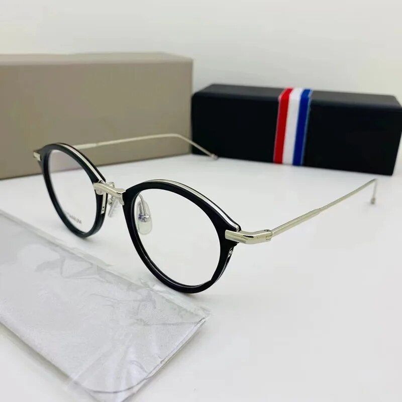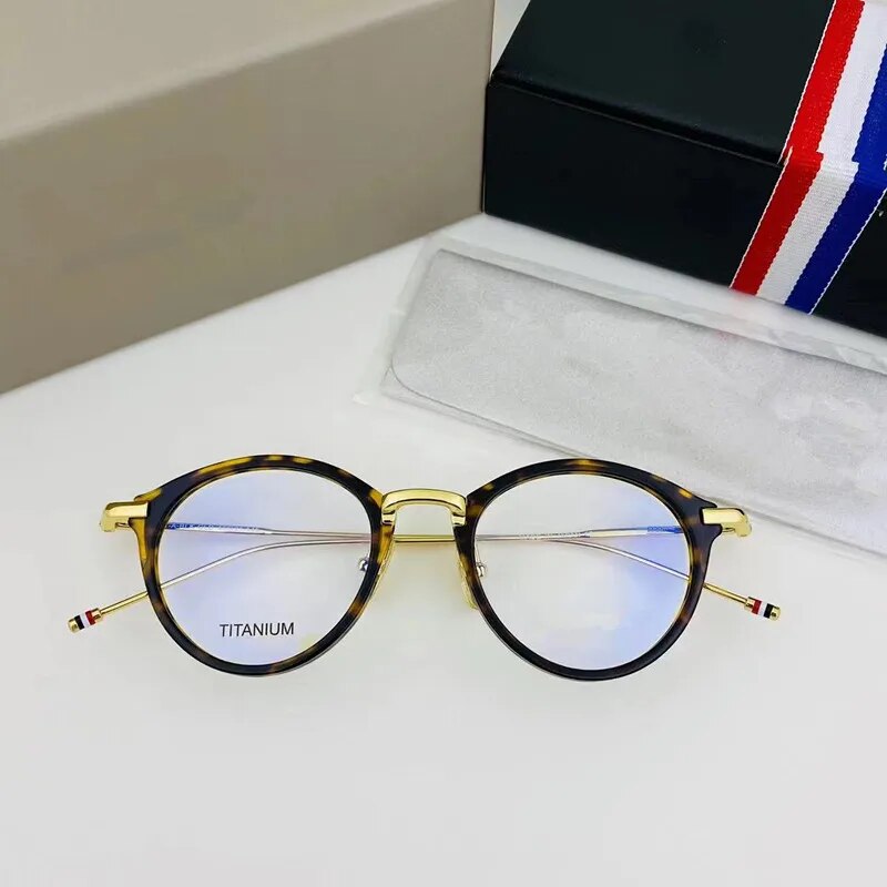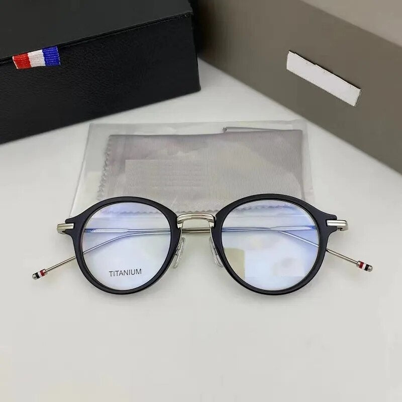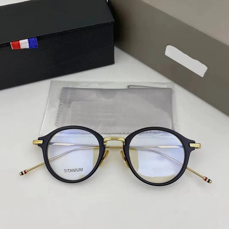 Brand Pure Titanium Glasses Frame Women Retro Round Prescription Eyeglasses Myopia Optical Eyewear Male spectacles tb908&tbx011