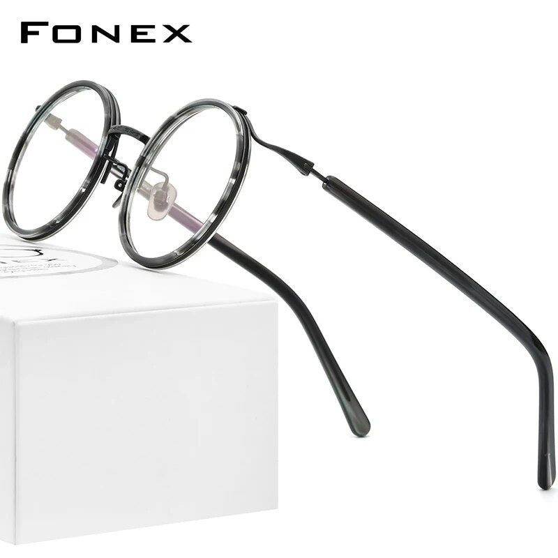 FONEX Acetate Titanium Glasses Frame Men Retro Vintage Round Prescription Eyeglasses Women Spectacle Optical Eyewear F85676