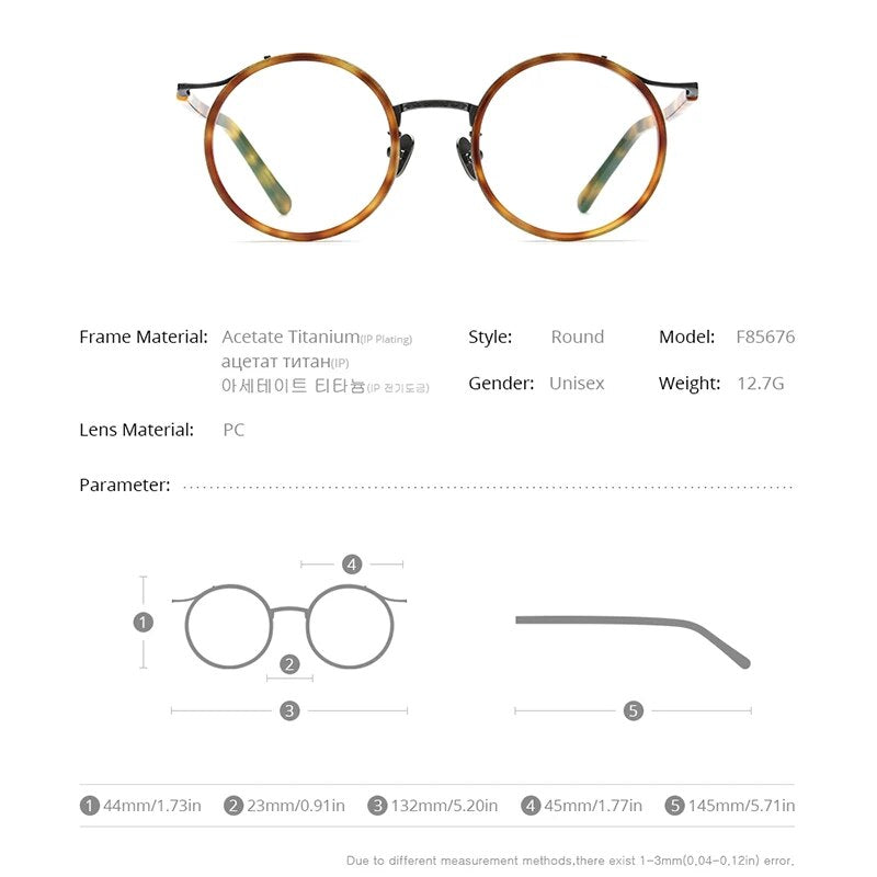 FONEX Acetate Titanium Glasses Frame Men  Retro Vintage Round Prescription Eyeglasses Women Spectacle Optical Eyewear F85676