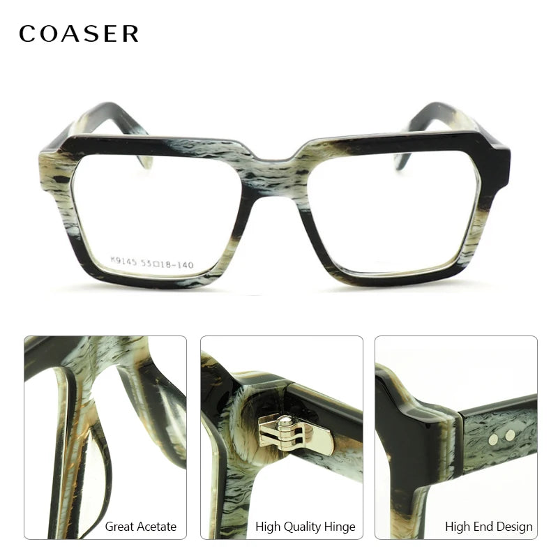 Trend Vintage Acetate Big Square Great Men Glasses Frame Women Optical Prescription Eyeglasses Wide Style Designer Eyewear