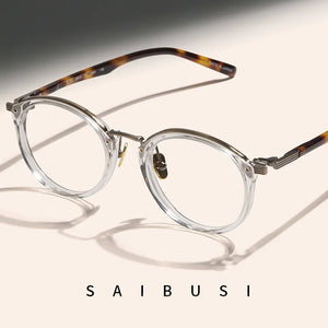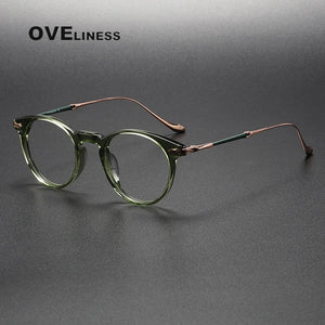 Japanese Style Titanium Acetate Glasses Frame Men Round Prescription Eyeglasses Women Brand Optical Myopia Blue Light Eyewear