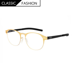 Retro Round Screwless Glasses Frame Handmade Men Vintage Optical Prescription Eyeglasses Business Women Spectacles