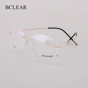 BCLEAR Titanium Alloy Glasses Frame Men Women Rimless Prescription Pilot Eyeglasses Myopia Optical European Eyewear