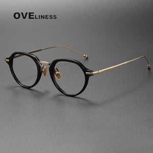 Vintage Acetate Titanium Eyeglasses Frame Men Round Myopia Prescription Glasses Frame Women Retro Japan Brand Eyewear