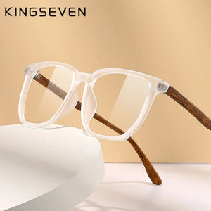 KINGSEVEN Men TR Glasses Frame Retro Wooden Temples Women Square Optical Customizable prescription Glasses