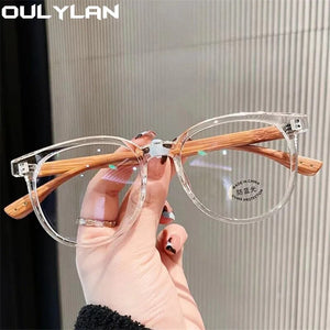 Oulylan TR90 Anti Blue Light Glasses Frame Women Men Vintage Wood Grain Legs Eyeglasses Frame Transparent Decoration Eyewear