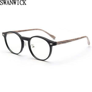 Swanwick women retro round glasses frame for men korean style wood grain TR90 eyeglasses accessories clear lens gray leopard