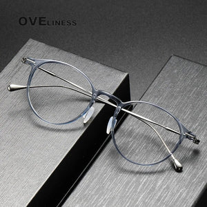 Titanium+Acetate Eyeglasses Frame Men Round Myopia Prescription Glasses Women Retro Optical Luxury Brand Glasses Frame Eyewear