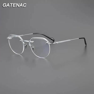 Gatenac Vintage Pure Titanium Glasses Frame Men Round Luxury Designer Prescription Eyeglasses Women Retro Myopia Optical Eyewear
