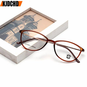 KJDCHD Tungsten Titanium Glasses Men Women Cat Eye Eyeglasses Frames Precription Spectacles Ultra Light Eyeglass Female Points