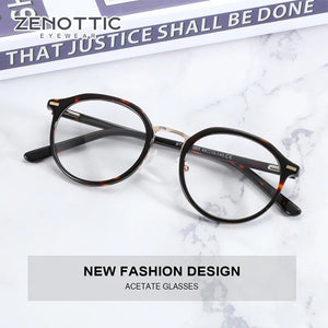 ZENOTTIC Vintage Retro Acetate Tortoiseshell Round Mens Eye Glass Frames for Women Optical Prescription Eyeglasses
