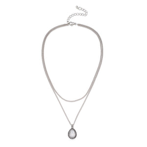 Fashion Multi Layer Vintage Silver Color Drop Stone Pendant Necklace Boho Jewelry Women Girl Jewelry Gifts