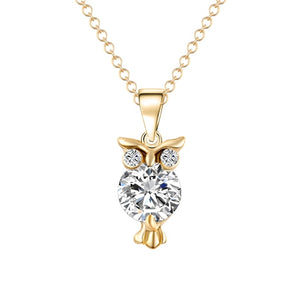 Fashion Gold Color Chain Necklace Crystal Zircon Lovely Animal Owl Pendants Silver Color Necklaces Jewelry For Women Gift