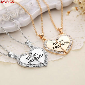 1Pair Half Love Heart Rhinestone Pendant Best Friends Necklace Friends Gift For Couple colar kolye collier collares