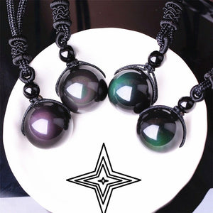 Natural obsidian Rainbow Eye Lucky Necklaces pendant Black stone Necklace for women men lovers gift Diy Jewelry