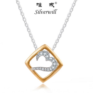 • Delicate golden cubic design necklace genuine sterling 925 silver exquisite pendant love Jewelry for elegant ladies