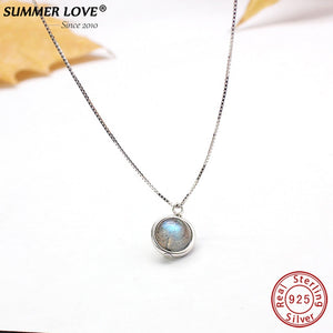 • Genuine S925 Sterling Silver Labradorite Pendant Necklace For Women Fine Jewelry Nature Stone Handmade bijoux femme