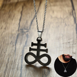 • Leviathan Cross Sulphur Pendant Necklace Stainless Steel Church of Satan Satanic Inverted Crucifix Male Jewelry