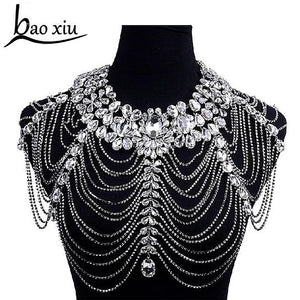 • Rhinestone Crystal Bridal Handmade Wedding Shoulder Halter Necklace Imitation Women Pageant Party Prom Jewelry Bijoux