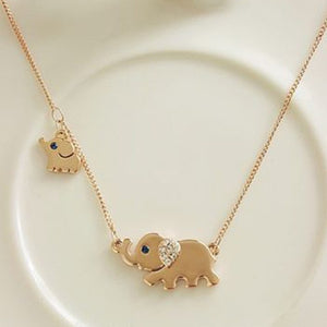 2017 new fashion cute elephant family stroll design fashion ladies charming crystal chain necklace ker necklace