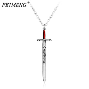 Game Of Thrones Sword Necklace Song Of Ice And Fire Pendant Lettering Vintage Silvery Pendant Necklaces For Women Men Jewelry