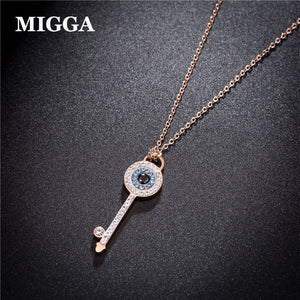 Rose Gold Color Blue Austrian Crystal Key Pendant Necklace Stainless Steel Women Jewelry