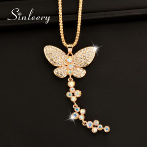 Charm Rhinestone Butterfly Long Pendant Necklace Gold Color Chain For Women Statement Jewelry Accessories My001