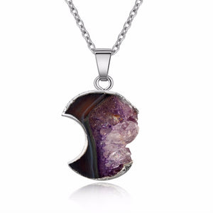 Trendy Geometric Crescent Purple Druzy Pendant Moon Necklaces Silver Chain Necklace Choker Jewelry For Women Girls Gifts DN702