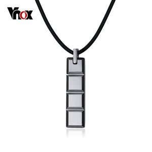 Classical Grid Style Necklace for Men Jewelry Tungsten Carbide Male Necklaces & Pendants Free Black Chain