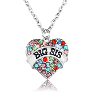 Colorful Big Sis Sister Heart Rhinestone Crystal Pendant Necklace Women Girl Friends BFF Jewelry Choker Collar Party Prom Gifts
