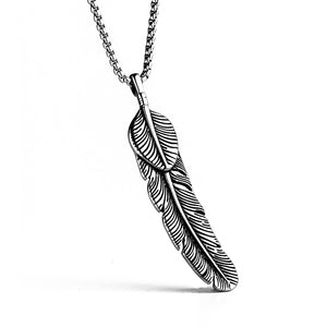 Men's Vintage A Feather Pendant Necklace For Men Statement Stainless Steel Titanium Jewelry