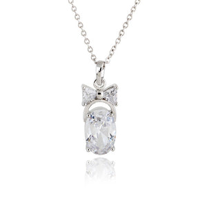 Wholesale Fashion White Gold-Color White Oval CZ Trendy Bowknot Pendant Necklace